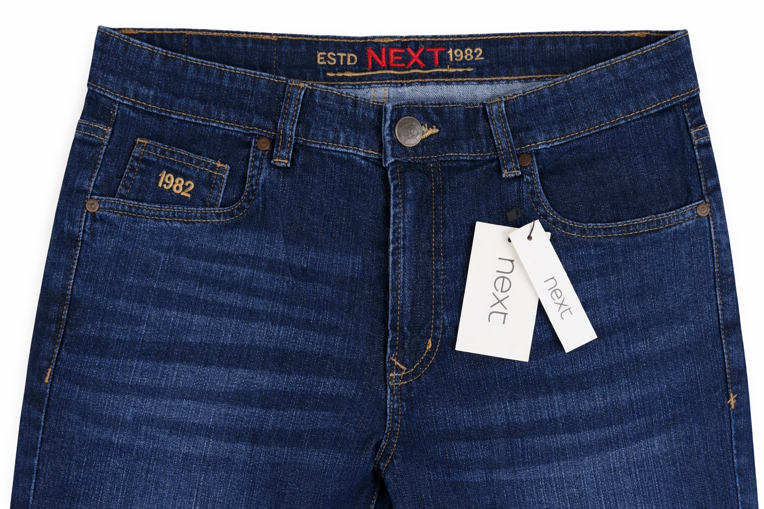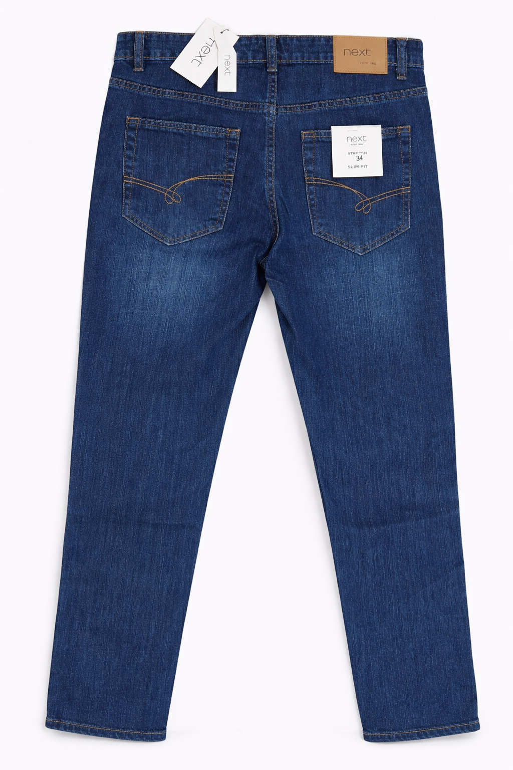 The mid-blue wash with natural whisker shading gives a stylish, branded look similar to original NEXT jeans—perfect for fashion-conscious men who want quality without overspending.